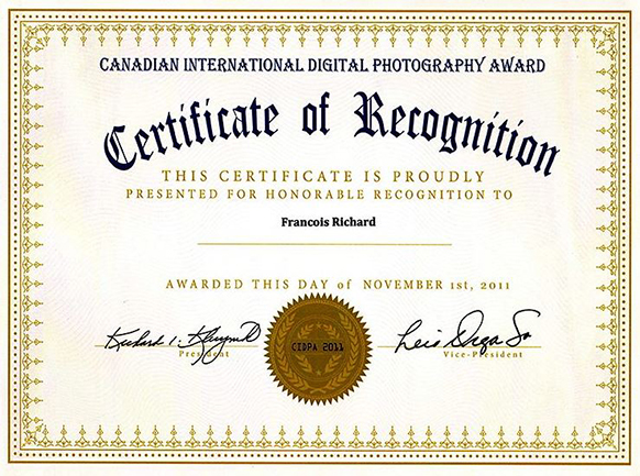 International Digital Photography Award, j'ai reçu une mention de reconnaissance de mon travail.